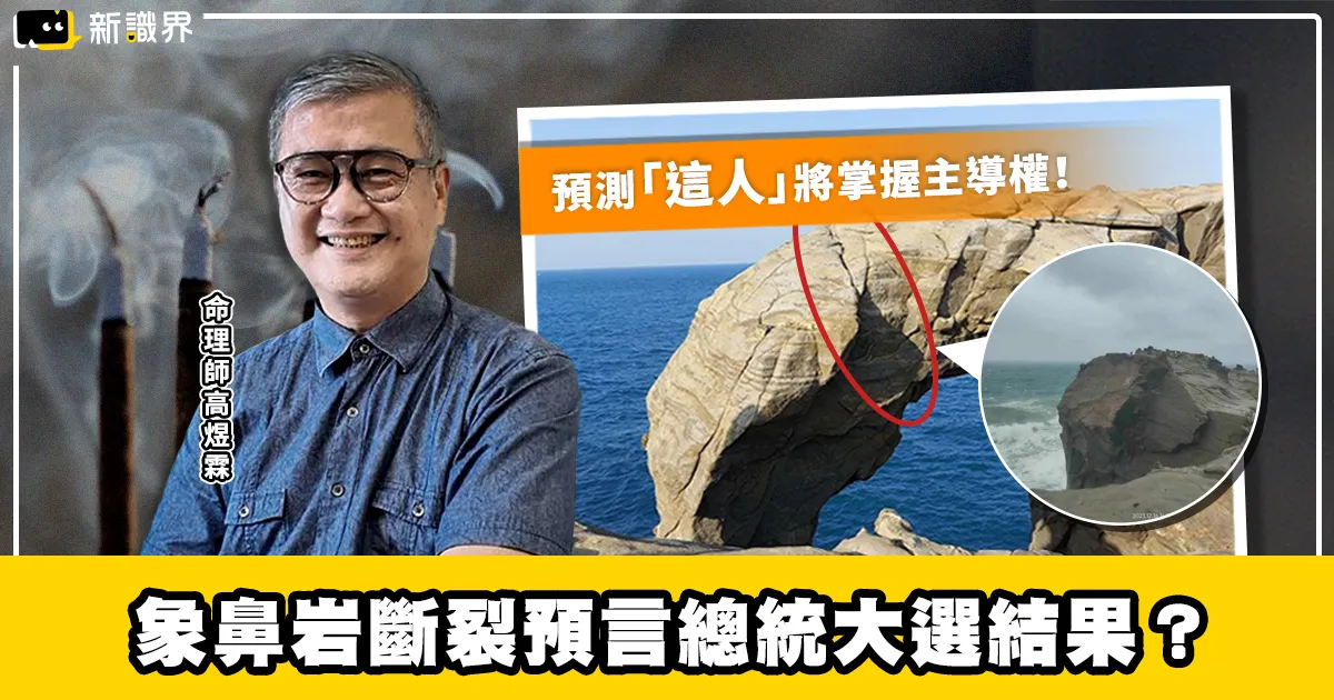 然而象鼻岩竟在12月16日下午突然斷裂,象鼻的部分掉入海中,讓人不勝唏噓。雖然象鼻岩崩落主因為自然風化,不少網友還是表達出不捨的心情,命理師高煜霖更利用「易經占卦」預測出2024總統大選可能的走向,表示柯文哲有博取大位之相