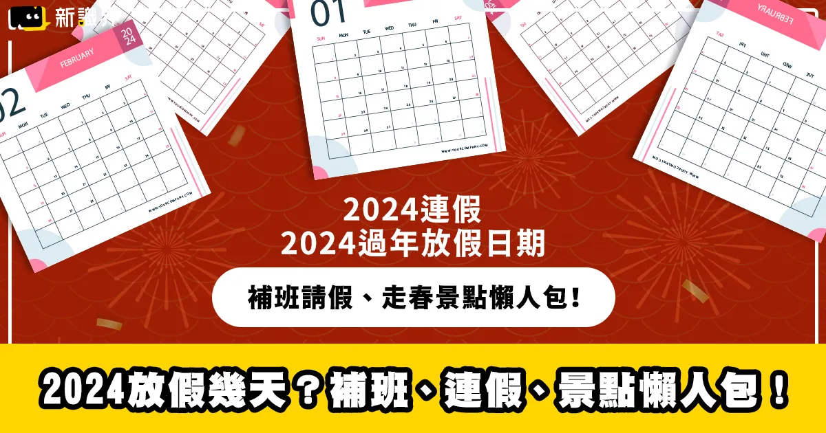 迎接嶄新一年的同時,想必各位上班族都和我一樣,最關心2024行事曆長什麼樣?2024連假怎麼放、2024過年放假幾天以及怎麼請假,才能讓特休發揮最大效益。今年含農曆春節假,總共有4個連續假期,2024補班日也只剩1天,想要提前規劃過年期間的活動和休息時間嗎?本篇一起來看如何在過年放上更多天的假期!