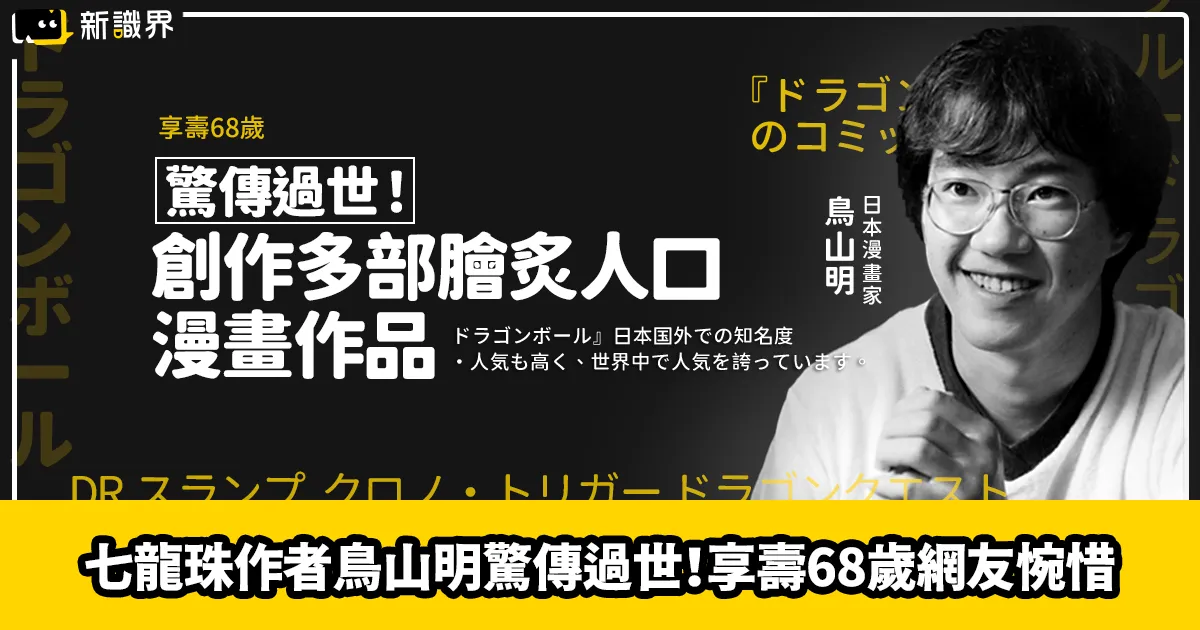 創作多部膾炙人口漫畫作品的日本漫畫家鳥山明於3月1日因急性硬腦膜下血腫不幸過世,今日(3月8日)由集英社發布消息,宣布鳥山明去世,享壽68歲。
