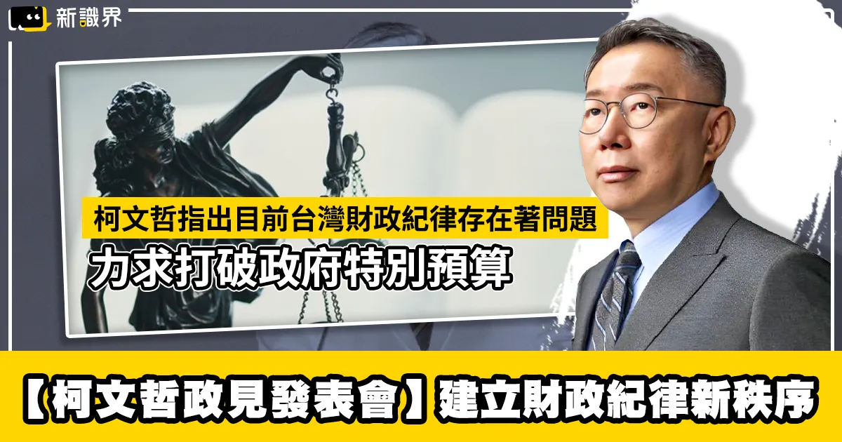柯文哲政見發表會上指出目前台灣政府在財政紀律存在著一系列問題:特別預算常態化、債務逐年攀升等,這些問題都是社會大眾關切的焦點,而針對這些議題,柯文哲也提出具體看法及政策建議。