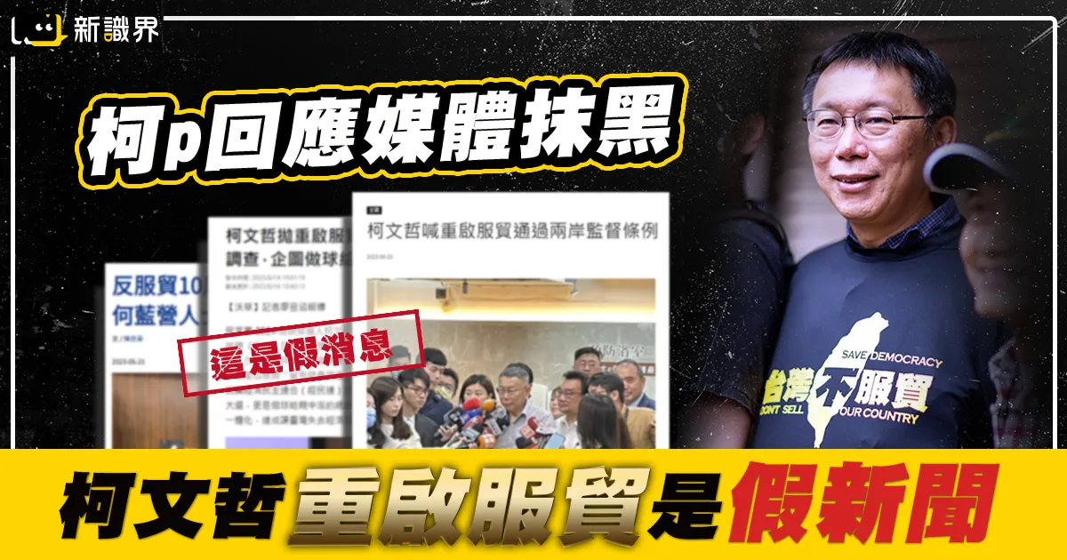 柯文哲重啟服貿是假新聞?柯P回應媒體抹黑:心中對服貿本就有標準答案