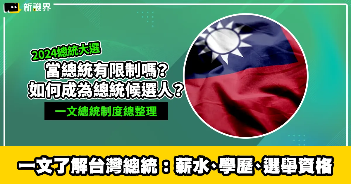 2024總統大選即將到來,我們都知道擔任總統需要肩負國家未來的重責大任,除此之外你對台灣總統了解又有多少呢?你總統薪水多少嗎?想成為台灣總統有任何學歷限制嗎?下文將依序解答你對台灣總統制度的疑問。
